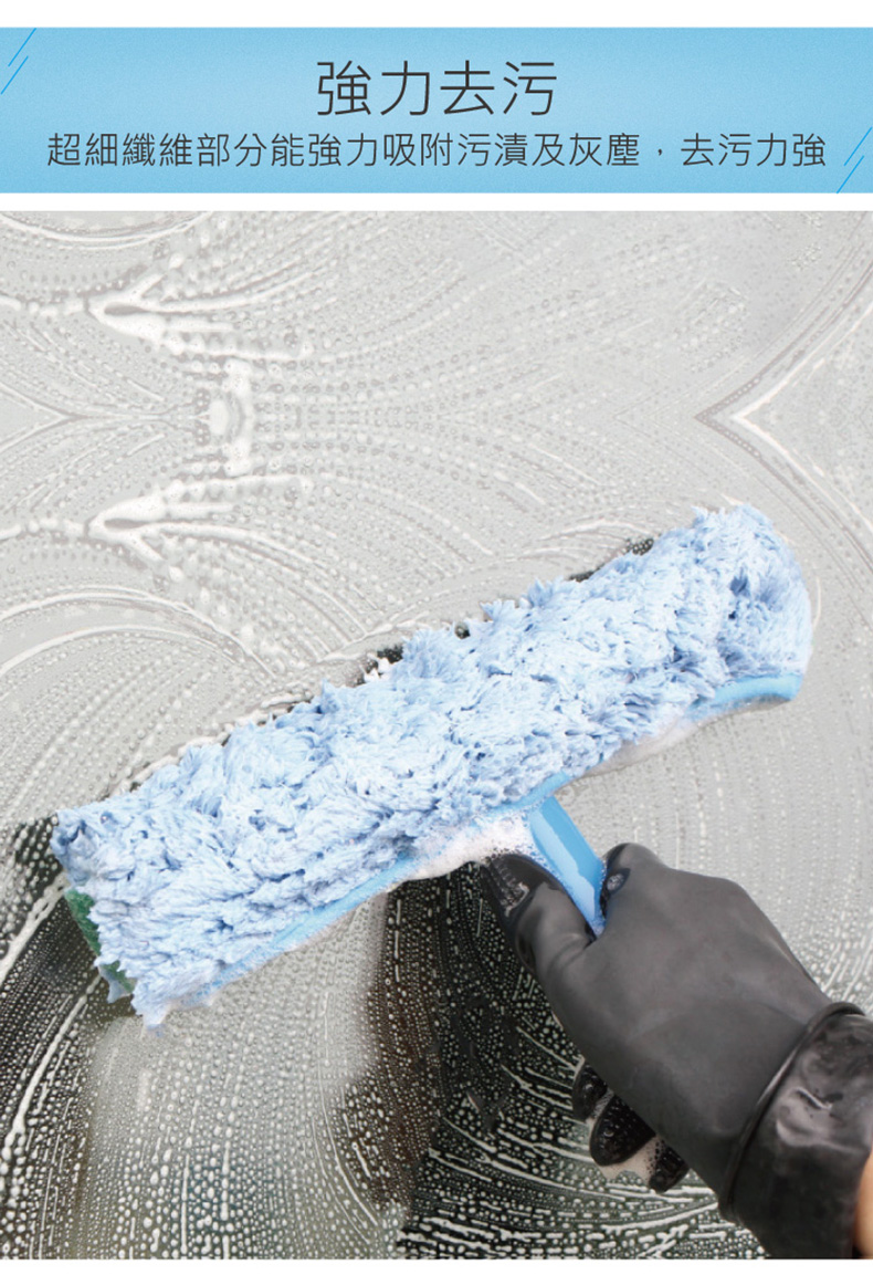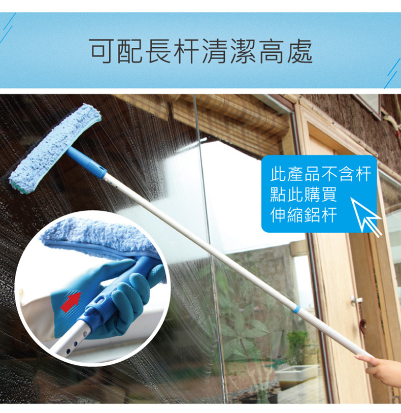 - 直接濕水或配合清潔劑使用,用於玻璃、門窗的清洗工具