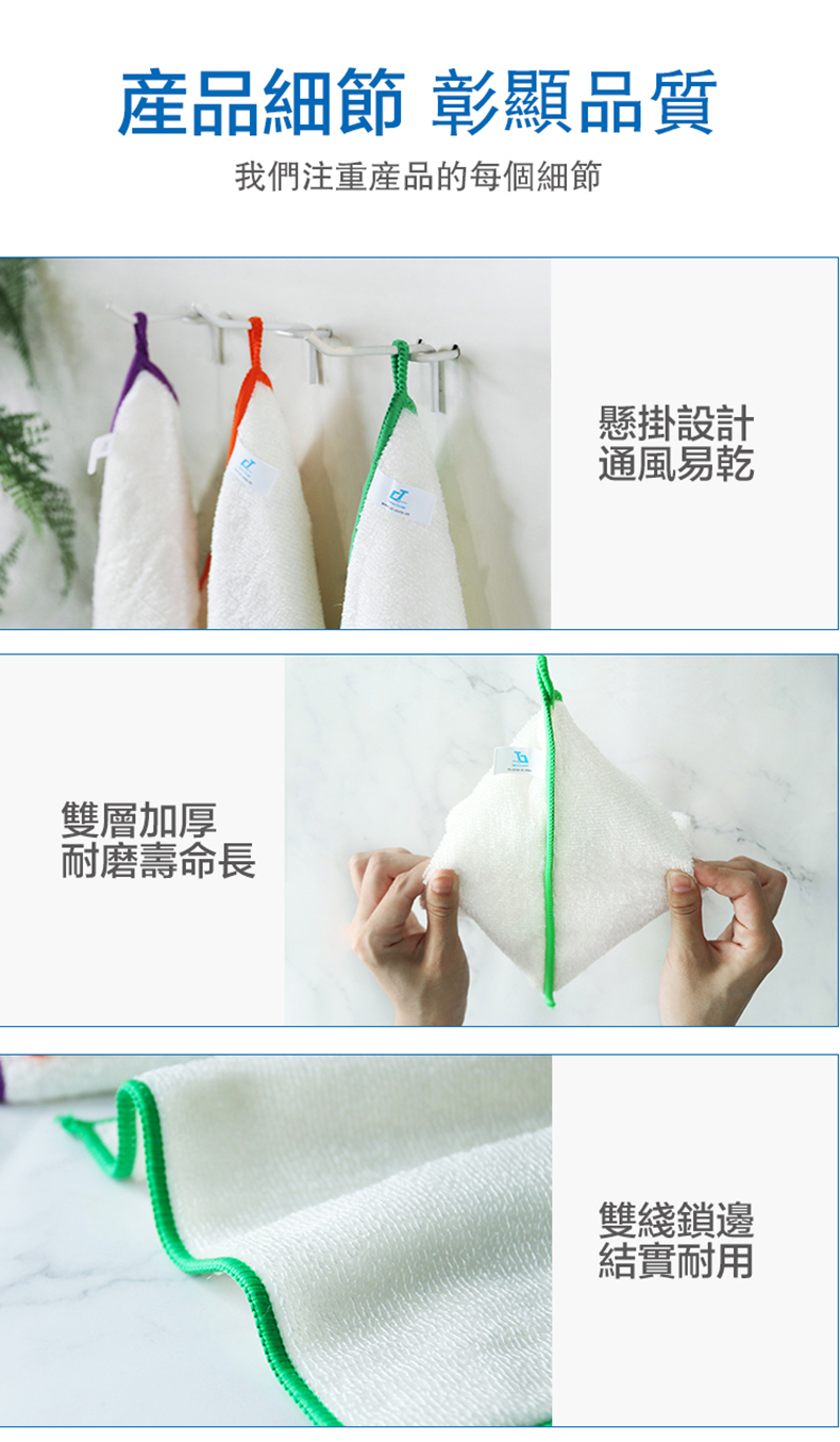 尤其廚房用抹布,常接觸油膩,如洗不淨更易藏細菌。CT竹纖維洗碗布就可減低這問題,竹纖維具有強自潔能力及透氣性強,使用後用清水沖洗已亮潔如新,不易有異味、不易滋生細菌。三色設計,可區分來用,減少交叉感染。