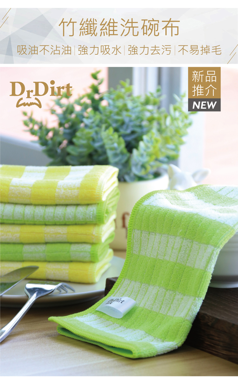 現在我家必備有Dr. Dirt 竹纖維洗碗抹布,竹對油污有天然的吸附能力,並有強效自潔能力,用來做抺布來對抗油污的地方,一擦即淨可省時省力。加上竹纖維和超細纖維混合緊密編織,增強吸水能力,亦不留毛絮及不掉毛。一包兩色可區分地方用,更乾淨衛生。
