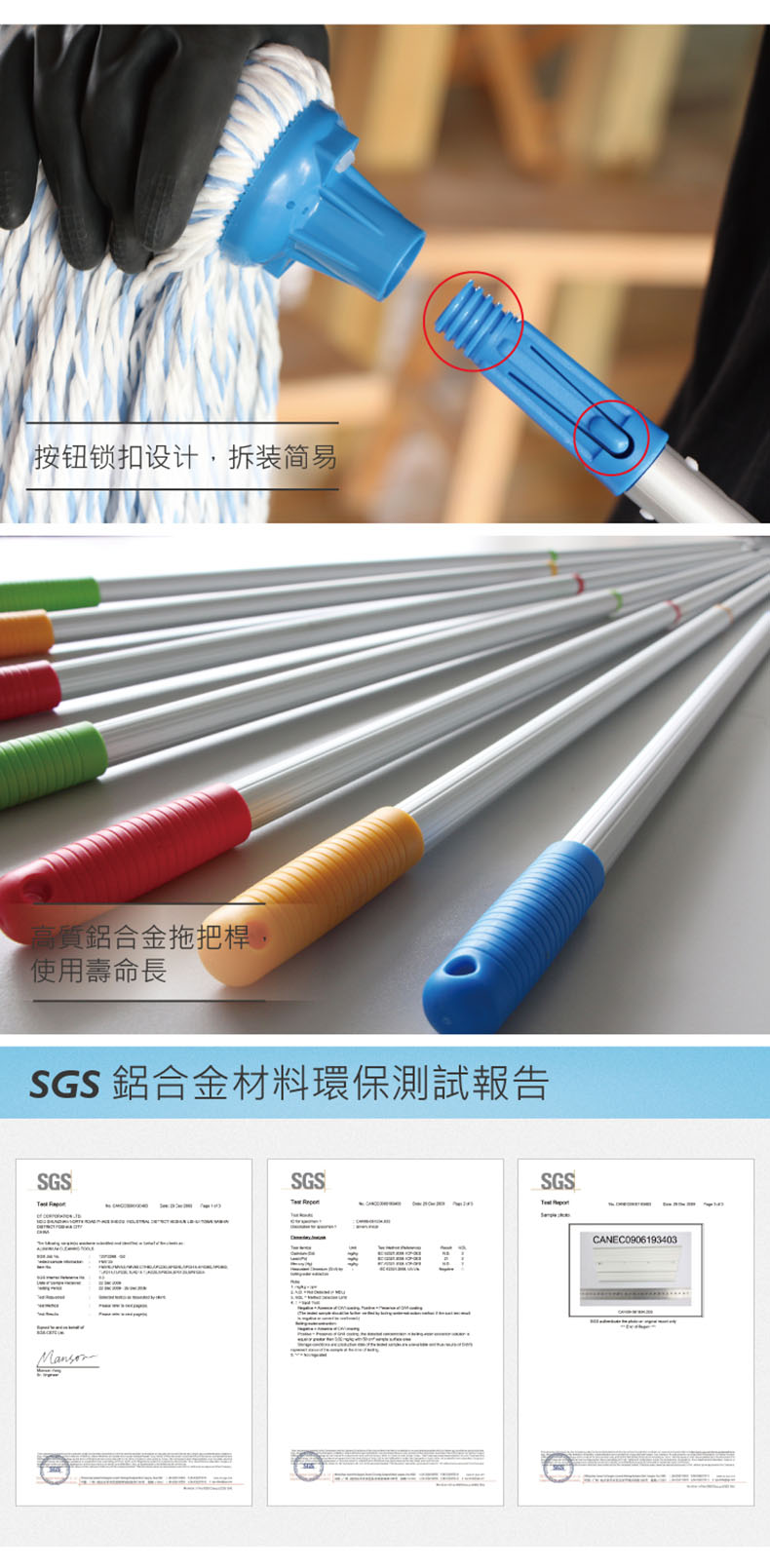 好在比我遇到CT微纖地拖, 拖頭用了超細纖維材料,有更強的清潔能力,還可用於漂白水而不脫色;拖把頭塑料蓋的排水孔及通風孔設計,助加快乾透,防止發霉發臭;最貼心還有四色選擇,可區分不同區域使用,大大減低交叉感染風險。