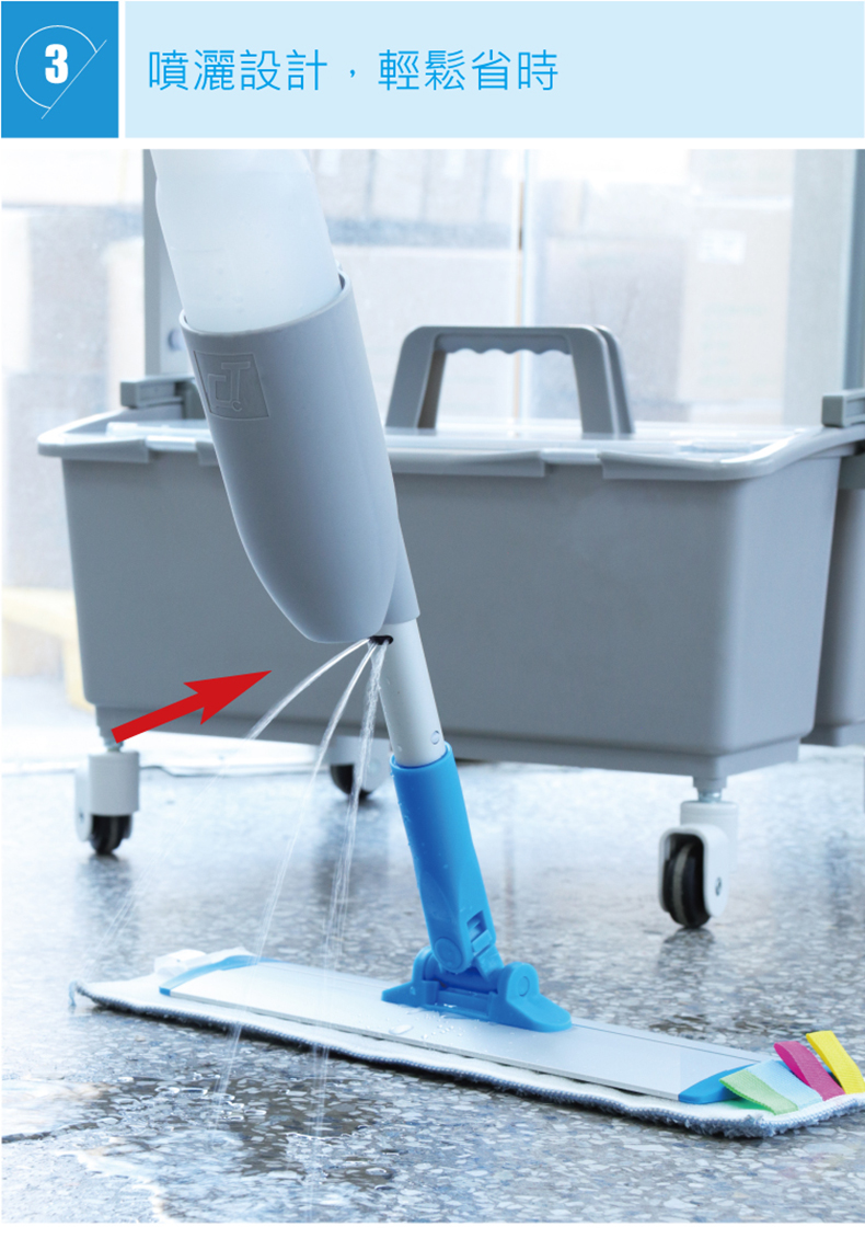 -手壓式灑水開關,邊灑水邊拖地,操作方便,節省時間