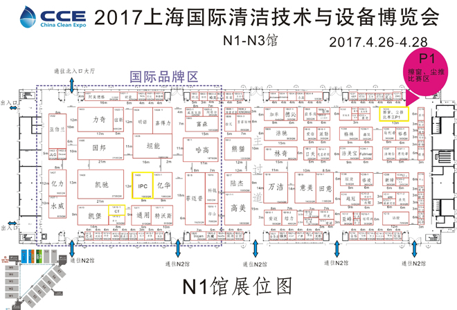 Match Specified Glass Cleaning Series Tools: Italy CT Shida 2 in 1 glass scraping, ultra-fine fiber glass cloth, glass barrels, nano-decontamination cotton, spray horizontal drag Competing time April 27, 2017, 13:30 pm - 16:30 pm Match place Shanghai New International Expo Center N1 Hall, P1 Division (2345 Longyang Road, Pudong New Area, Shanghai) Booth diagram is as follows: ![]()