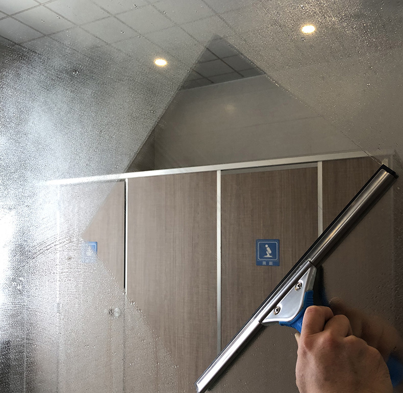 這時候可以使用玻璃刮直接一刮,將水霧掛掉就行,無需在用抹布去擦了,既節省時間,也不用弄濕抹布。
