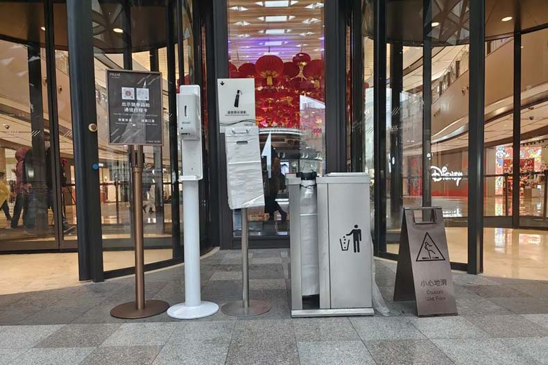 為了避免顧客進入商場時,攜帶的雨具上的滴水,造成商場地面濕滑的情況,國內大型商場幾乎都已將一次性傘套機作為雨天入口的標配設施。