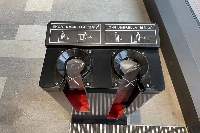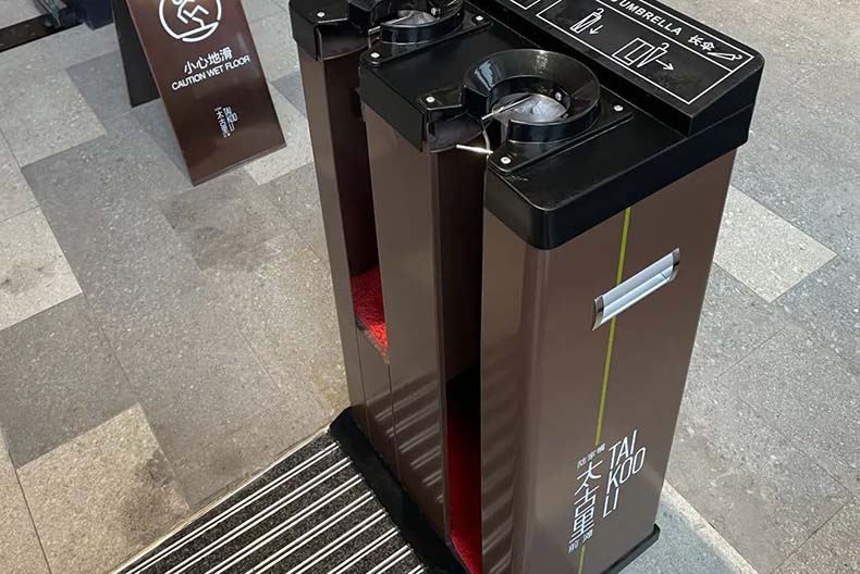 前灘太古裏使用的是傳統的一長一短雙頭傘套機,並且在其表面印製了使用圖示,方便顧客使用。