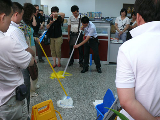 參觀團成員體驗不同地拖的優劣性。
