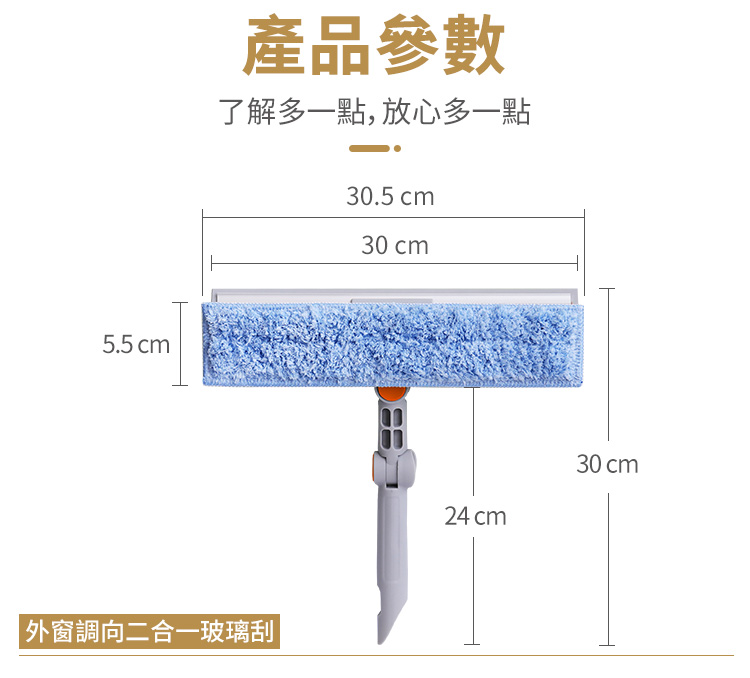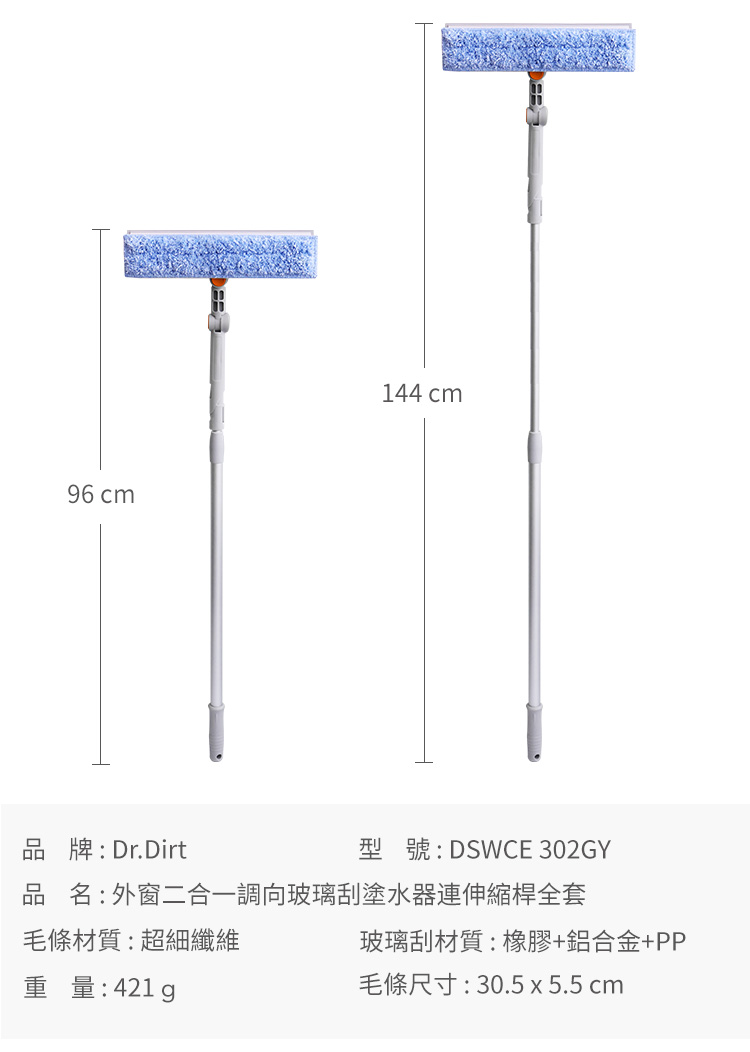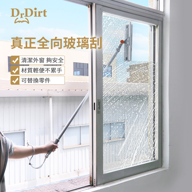 Dr.Dirt 二合一調向玻璃刮 配1塊備用塗水布 及 1條備用膠條 30cm